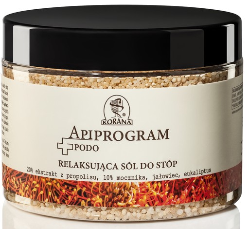 Relaksująca sól do stóp z Propolisem, Mocznikiem, jałowcem i eukaliptusem Apiprogram Podo Korana 500 gram