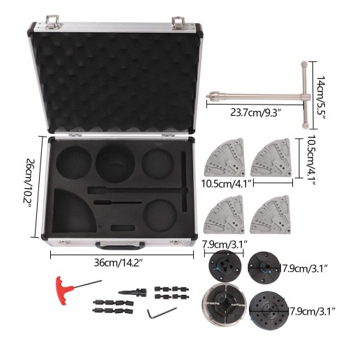 Ten zestaw uchwytów zawiera wiele akcesoriów i jest wykonany z wysokiej jakości stali #45. Posiada dużą powierzchnię mocowania i podparcia z funkcją samocentrowania. Nie trzeba go wielokrotnie kalibrować podczas mocowania, co może zaspokoić potrzeby precyzyjnej obróbki. Uchwyt posiada cztery szczęki o doskonałej sile chwytu, co pozwala na pewne trzymanie zarówno okrągłego, jak i kwadratowego drewna. To Twój idealny wybór!