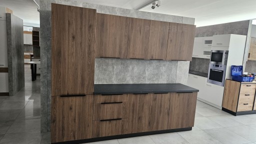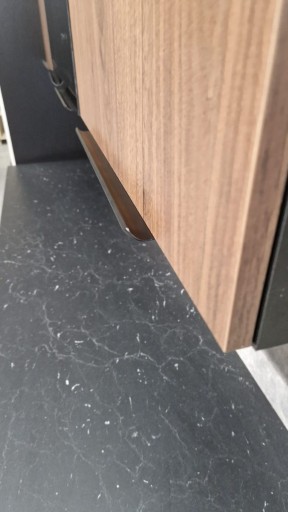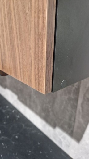 - Fronty szafek - płyty o grubości 16mm w kolorze orzech okapi, czarny mat , obrzeże frontu PCV 1mm