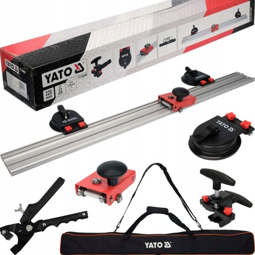 - do zamocowanej na przyssawkach prowadnicy mocujemy wózek z zespołem tnącym