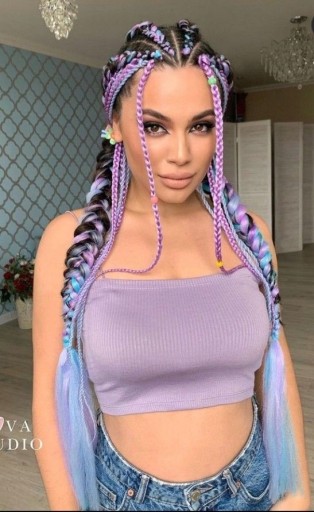 ✭ Miękkie, kolorowe włosy syntetyczne w pasmach doskonale wplotą się i wmieszają w naturalne włosy. Wykonasz z nich zarówno drobne warkoczyki jak i grube warkocze oraz inne fantazyjne fryzury