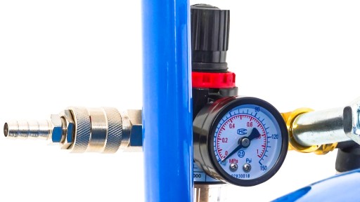 Manometr ułatwia kontrolę ciśnienia w zbiorniku zwiększając bezpieczeństwo w miejscu pracy.