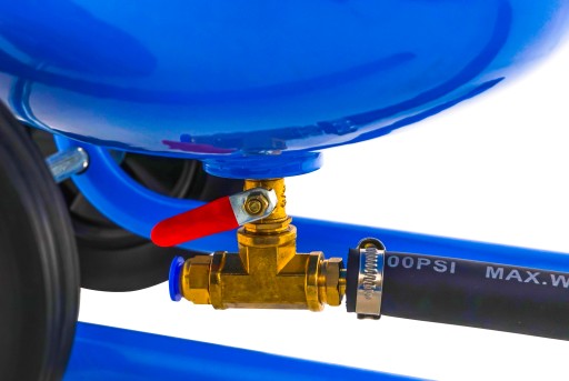 Piaskarka wyposażona jest w specjalny zawór bezpieczeństwa, który zabezpiecza ją przed rozprężeniem w przypadku zbyt dużego ciśnienia.