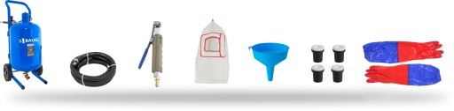 Zestaw zawiera wszystkie potrzebne rzeczy do piaskowania. Wystarczy podłączyć go pod kompresor i nasypać do zbiornika piasek. Piaskarką spokojnie wyczyścisz płot, metal, stary mur, odnawiane części samochodu lub motocykla!