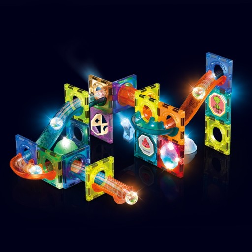 KLOCKI ŚWIECĄCE MAGNETYCZNE TOR KULKOWY ZESTAW DLA DZIECI Świetlny 49 el.