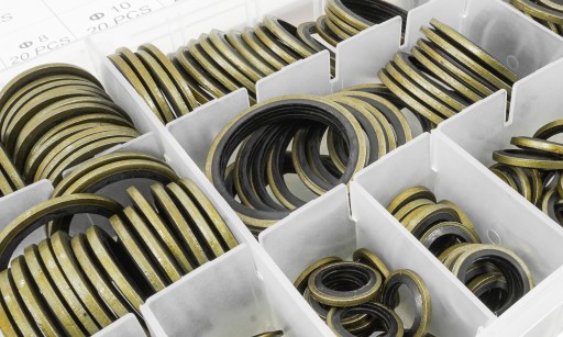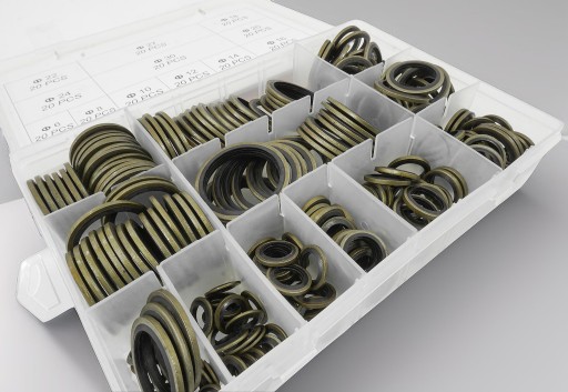 Zestaw metalowo-gumowych podkładek uszczelniających w rozmiarach od M6 do M30. Wykonane z metalu i gumy posiadają dobre właściwości uszczelniające, są odporne na wysokie ciśnienie i olej.
