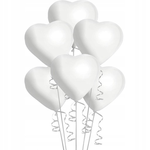 Białe, pastelowe balony w kształcie serc idealnie nadają się na wyjątkowe okazje.