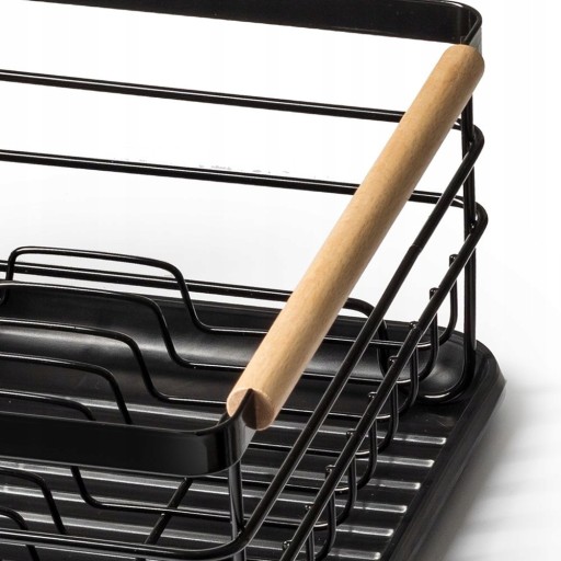 Elegancka suszarka do naczyń w kolorze czarnym. Posiada miejsce na talerze, szklanki oraz sztućce. Wyposażona w tacę ociekową.