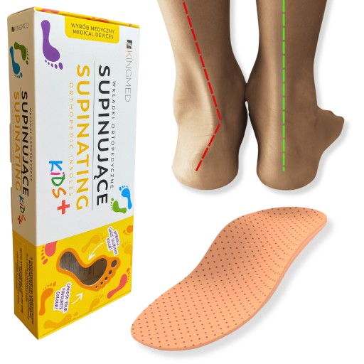 Wkładki Ortopedyczne Supinujące dedykowana są dla dzieci, które zmagają się z koślawością kolan, pięt (nadmierna pronacja). Wada ta charakteryzuje się wygięciem kolan do wewnątrz oraz pochyleniem się stopy na jej wewnętrzną krawędź.