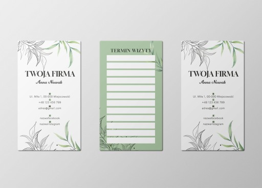 Terminarz wizyt wizytówka salon beauty 250 szt rośliny liście fryzjer