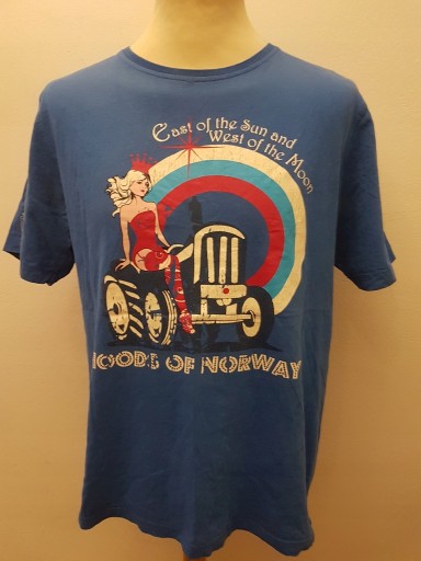 KOSZULKA T-SHIRT ORYGINALNA , BAWEŁNIANA RENOMOWANEJ FIRMY MOODS OF NORWAY W KOLORZE NIEBIESKIM, .KOSZULKA WYKONANA Z BARDZO DOBREGO MATERIAŁU 100 % COTTON .KOSZULKA BEZ PLAM ,DZIUR.STAN WIDOCZNY NA ZDJĘCIACH.