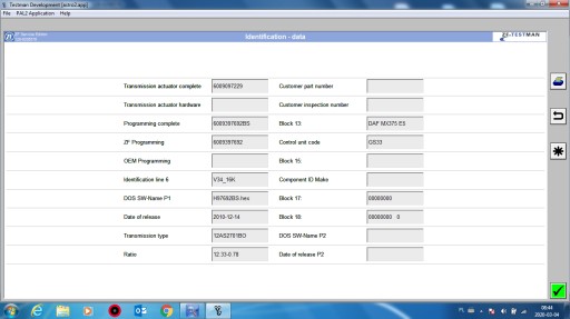 Każdy sterownik jest testowany na hamowni ZF programem testowym w celu sprawdzenie parametrów sterownika oraz poprawnego działania ?????