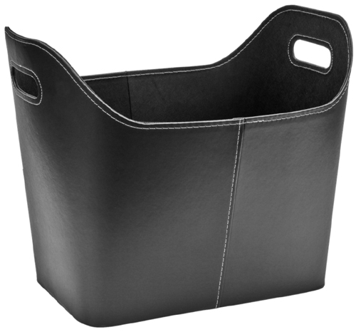 Duży elegancki kosz z ekologicznej skóry może służyć jako praktyczny , pojemny gazetnik.