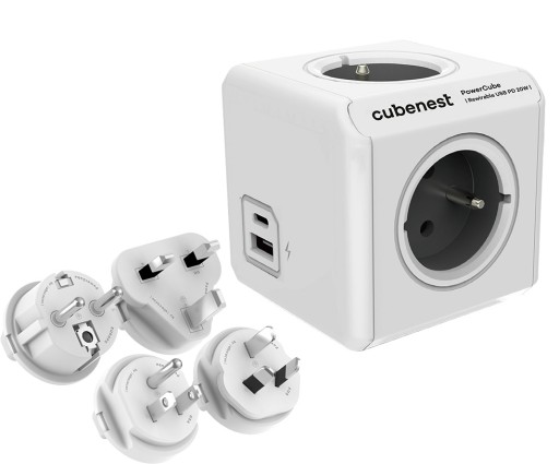Zestaw zawiera wszystkie cztery wymienne wtyczki podróżne (UE, USA, UK, AU/CN), dzięki którym można podróżować dookoła świata. Dzięki złączom światowym nie ma problemu z ładowaniem urządzenia w miejscu na świecie . Co najlepsze? Możesz ewentualnie zastosować PowerCube w zaciszu własnego domu do wykorzystania!