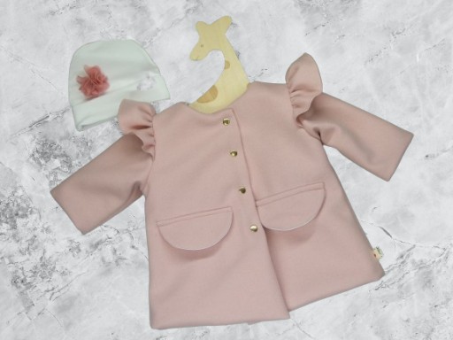 Zapinany na kryte zatrzaski. W ramionkach falbanki. Płaszczyk doskonale sprawdzi się na wyjątkowe okazje jak i na co dzień. Odpowiedni na okres przejściowy (wiosna, jesień)