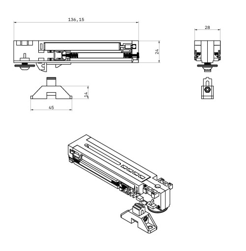 Przeznaczony do drzwi przesuwnych zamontowanych na systemach z szyną jezdną Herkules, Herakles lub innych szyn o podobnym przekroju wewnętrznym - nie mniejszym niż 28x24[mm].