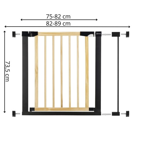Bezpieczna, solidna bramka zabezpieczająca dla dzieci lub dla małych i średnich zwierząt. Bramka może oddzielać określone obszary w domu, niebezpieczne dla naszych pociech. Zabezpiecza schody bądź drzwi przed niekontrolowanym wejściem przez dzieci. Bramka mocowana jest rozporowo za pomocą specjalnych śrub, dzięki czemu montaż, jak i demontaż jest niezwykle prosty i szybki. Regulacja pozwala zamontować bramkę pomiędzy futrynami o szerokości 75-82 cm. Na innych aukcjach istnieje możliwość poszerzenia o dodatkowe elementy.