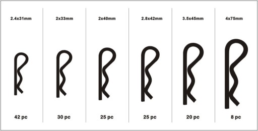 Uniwersalny zestaw zawleczek - przetyczek sprężystych. Przydatny zarówno w profesjonalnym serwisie jak i w przydomowym garażu.