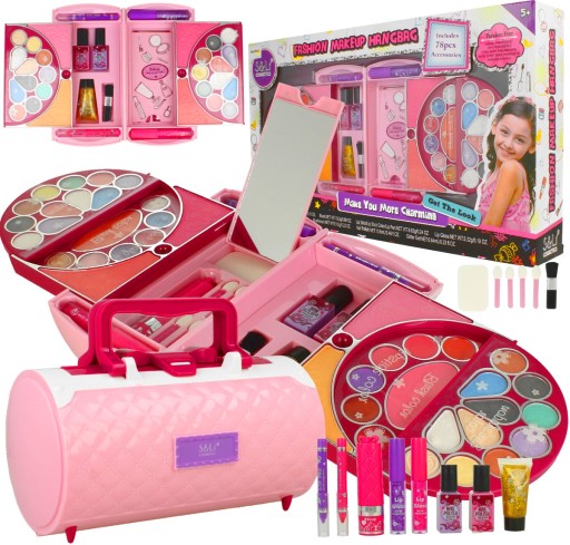 Oferowany zestaw kosmetyków to jeden z największych dostępnych na rynku. To spełnienie marzeń każdej małej dziewczynki. Po otwarciu kuferka z wewnątrz wydobywa się owocowo-słodki zapach, który przypadnie do gustu każdej małej księżniczce. Zestaw składa się z:
