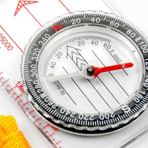 Kompas linijka przeznaczony jest do określenia stron świata oraz wyznaczania azymutu na mapie. Posiada obrotową tarczę zanurzaną w niezamarzalnej cieczy a także 2 wykresy do przeliczania skali mapy na odległość w kilometrach.