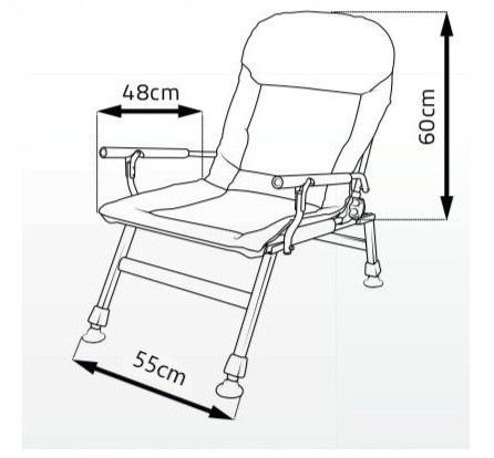 Model F5R jest fotelem wędkarskim posiadającym wygodne ergonomiczne podłokietniki i regulację zarówno oparcia jak i nóżek