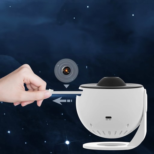 Urządzenie zostało wyposażone w aż 12 wymiennych wkładów, a każdy z nich wyświetli projekcję kosmosu. która w mgnieniu oka zmieni Twój pokój!