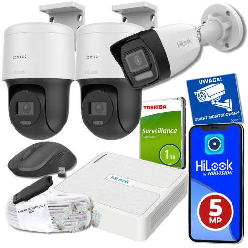Комплект IP-мониторинга на 3 камеры: 2x IP PoE 4MPx HiLook PTZ-камера