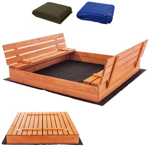 PIASKOWNICA ZAMYKANA DREWNIANA IMPREGNOWANA Z ŁAWKAMI DUŻA 140 PRODUCENT