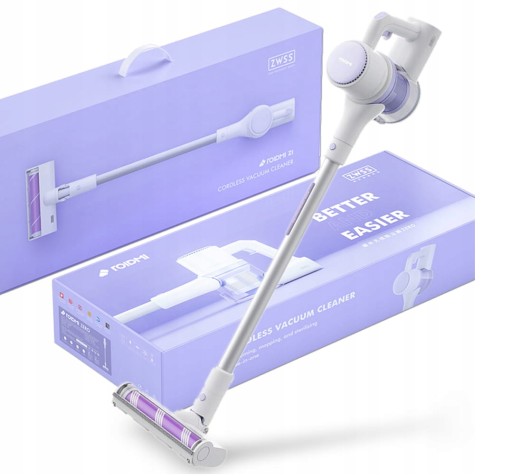 Nowoczesna forma. Ponadczasowa biel i piękny lawendowy kolor. Roidmi Z1 to doskonałe połączenie nowoczesnego stylu i funkcjonalności. Odkurzaj i mopuj jednocześnie. Wygodne sprzątanie jedną ręką. Niezwykle lekka, ergonomiczna konstrukcja znacznie ułatwia sprzątanie dzięki temu, że centralny ciężar znajduje się bliżej uchwytu odkurzacza, można go łatwo podnieść lub popchnąć. Duży pojemnik na brud o pojemności aż 0,65l można opróżnić za dotknięciem jednego przycisku, co pozwala uniknąć kontaktu z brudem. Wygodne i proste w użyciu akcesoria zapewnią idealną czystość na różnych rodzajach podłóg, materacy. Pomogą też pozbyć się kurzu na lampach czy pod sufitem.