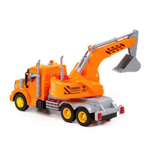 Samochód koparka, który wzorowany jest na prawdziwych pojazdach drogowych. Koparka wydaje realistyczne efekty dźwiękowe (odpalania pojazdu, cofania, klaksonu, dźwięk pracującego silnika) oraz świetlne - migające światła na dachu pojazdu.