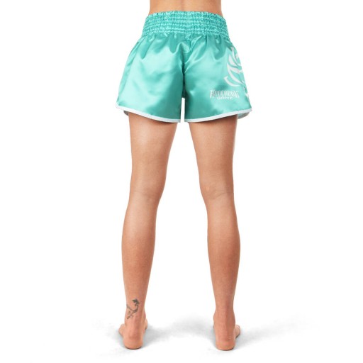 Spodenki Muay Thai dla kobiet wyróżniają się jakością wykonania oraz kolorem. Oddychający i lekki materiał zapewnia komfort podczas treningu. Charakterystyczny krój spodenek Muay Thai z krótkimi i szerokimi nogawkami gwarantuje maksymalną swobodę ruchów podczas kopnięć i uderzeń kolanami. Typowy w tajskim boksie szeroki, marszczony pas spodenek (ze sznurkiem wewnątrz) świetnie dopasowuje się do ciała.