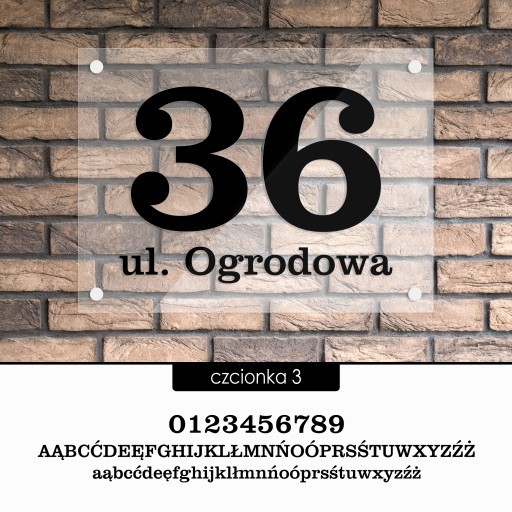 Tablica adresowa adres 3D numer na dom 40x30 przeźroczysta - szkło akrylowe