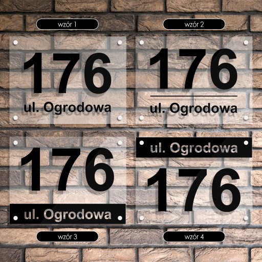 To jak finalnie tablica będzie wyglądała zależy w dużej mierze od Państwa. Poniżej prezentujemy 4 wzory tablicy oraz 10 wyselekcjonowanych czcionek. Prosimy zapoznać się z dostępnymi opcjami, następnie w informacji do sprzedającego prosimy podać wybrany wzór tablicy oraz czcionkę.