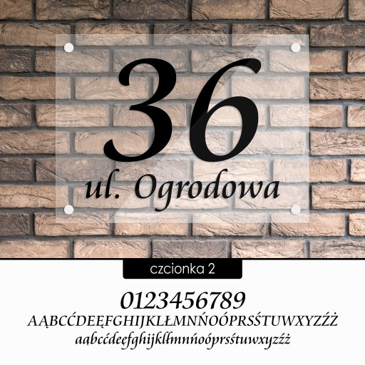 Proponujemy 10 estetycznych i bardzo czytelnych czcionek. Wszystkie posiadają polskie znaki. Dlaczego 10 a nie 50? Ponieważ mamy duże doświadczenie w realizacji tablic adresowych, wiele czcionek kompletnie nie nadaje się do zapisania adresu dlatego właśnie korzystamy tylko z tych, które uważamy za właściwe.