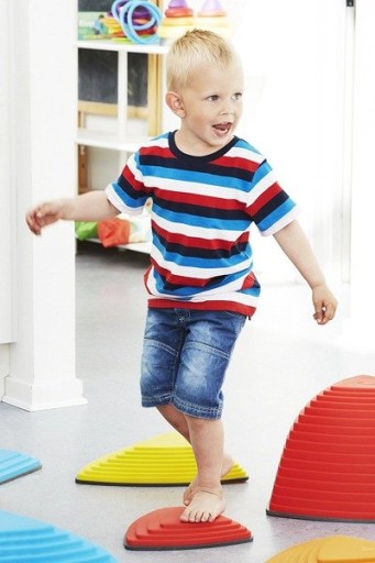 Stąpając po wyspach o dwóch wysokościach,maluchy ćwiczą mięśnie śródstopia, poprawiają ukrwienie w kończynach, doskonalą równowagę.
