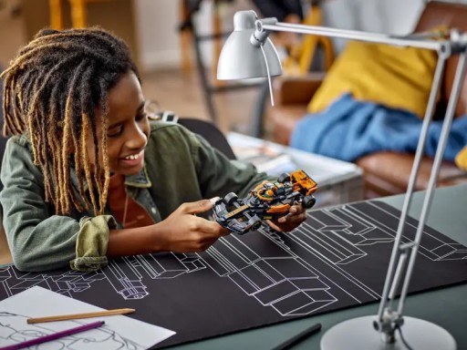 - Minifigurka w zestawie — samochód McLarena do zbudowania zawiera minifigurkę kierowcy z kaskiem, włosami i kluczem, którą dzieci mogą umieścić za kierownicą i organizować superszybkie wyścigi F1