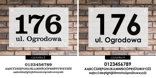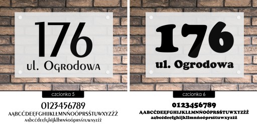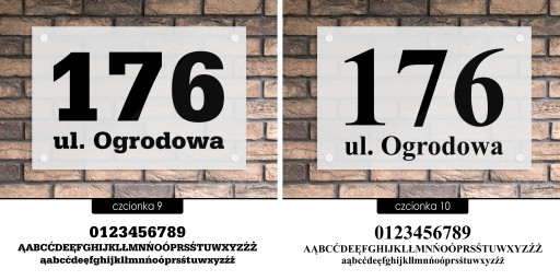 Proponujemy 10 estetycznych i bardzo czytelnych czcionek. Wszystkie posiadają polskie znaki. Dlaczego 10 a nie 50? Ponieważ mamy duże doświadczenie w realizacji tablic adresowych, wiele czcionek kompletnie nie nadaje się do zapisania adresu dlatego właśnie korzystamy tylko z tych, które uważamy za właściwe.