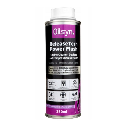 Oilsyn ReleaseTech Power Flush - to połączenie nowoczesnych dyspergatorów, detergentów oraz estrów, które szybko usuwają osady z układu smarowania silników benzynowych i wysokoprężnych.