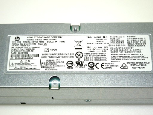 Zasilacz serwerowy wymontowany z serwera HP model HSTNS-PR42 firmy HP.