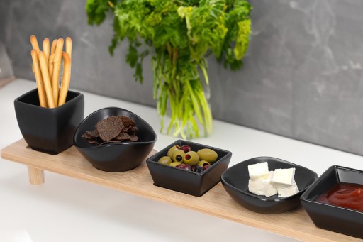 ✅ Nowoczesny design - Czarne miseczki i naturalna taca bambusowa wpisują się w nowoczesny styl i dodadzą elegancji każdemu spotkaniu.