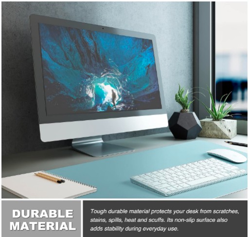 - CHROŃ SWOJE BIURKO Wykonane z wytrzymałego materiału ze skóry PU, który chroni biurko przed zadrapaniami, plamami, zalaniem, ciepłem i zarysowaniami. Nadaje także Twojemu biuru nowoczesną i profesjonalną atmosferę, gdy umieścisz go na biurku. Jego gładka powierzchnia sprawi, że pisanie, pisanie i przeglądanie sprawią Ci przyjemność. Świetnie sprawdzi się zarówno w biurze jak i w domu.