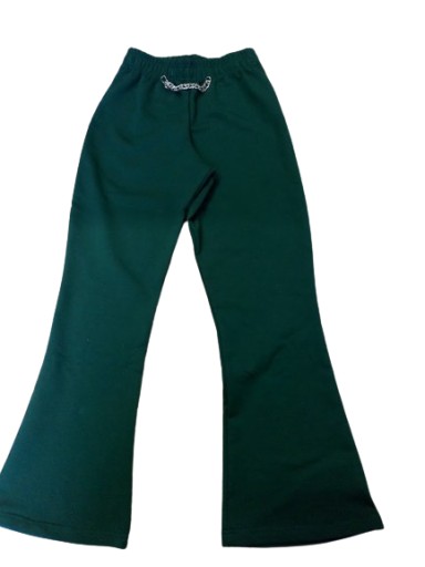 Uszyte z dzianiny dresowej z elastanem w kolorze zielonym, butelkowym.