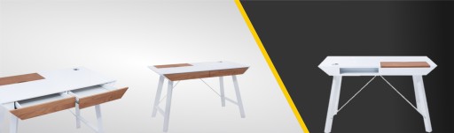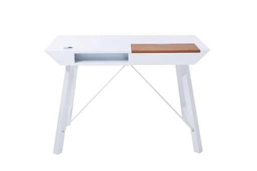 Biurko Ruby posiada biały blat roboczy wykonany z lakierowanej płyty MDF wykończonej w macie. Biurko posiada dwie praktyczne szuflady osadzone tuż pod blatem roboczym. Fronty szuflad są z okleinowanego MDFu w kolorze dębu. W szufladach bez problemu przechowywać można dokumenty, ładowarki do telefonu, czy też materiały piśmiennicze. Z tyłu biurka znajduje się przepust pozwalający na wyprowadzenie okablowania. Dodatkowo z tyłu blatu ulokowano niewielki schowek, który także posiada przepust kablowy. Biurko Ruby mimo niewielkich rozmiarów zapewni odpowiednią ilość miejsca, by móc swobodnie pracować, czy też relaksować się podczas zakupów online. Schowek oraz szuflady pozwolą na przechowywanie małych przedmiotów, a biało dębowa kolorystyka pasować będzie do wnętrz w stylu skandynawskim oraz nowoczesnym.