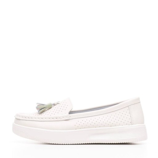 BEŻOWE JASNE MOKASYNY SKÓRZANE AŻUROWE PLATFORMY CHWOSTY POLSKIE