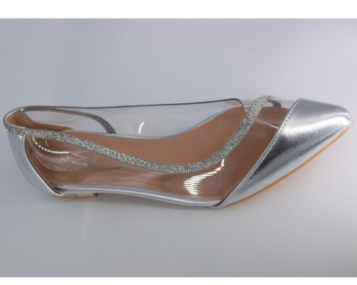 SREBRNE BALERINY DAMSKIE ZAMSZOWE W SZPIC SILIKONOWE SANDAŁY 42