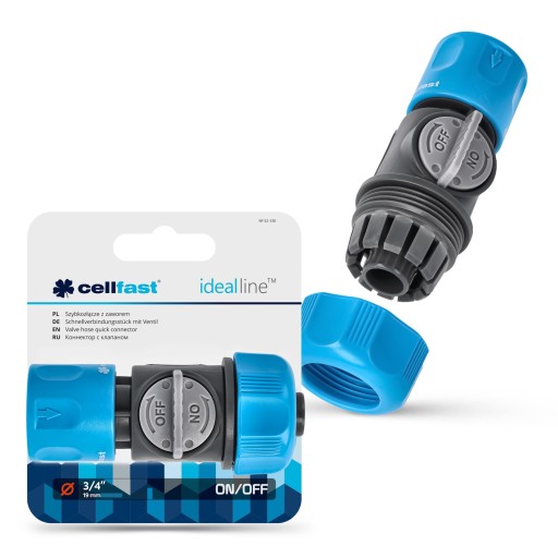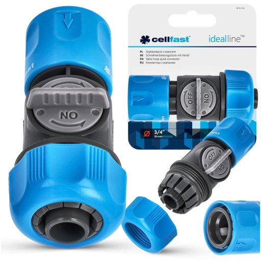 Быстроразъемный соединитель Cellfast IDEAL с клапаном ВКЛ-ВЫКЛ для шланга | Соединитель шланга 3/4 дюйма