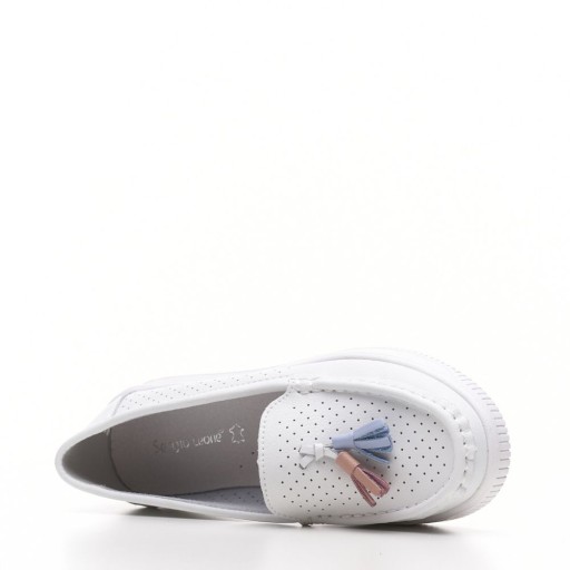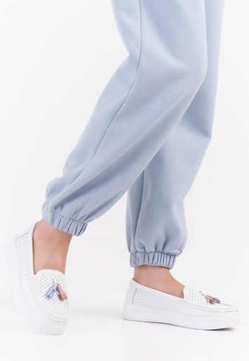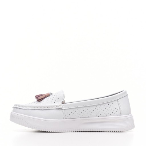 BIAŁE JASNE MOKASYNY SKÓRZANE AŻUROWE PLATFORMY CHWOSTY POLSKIE