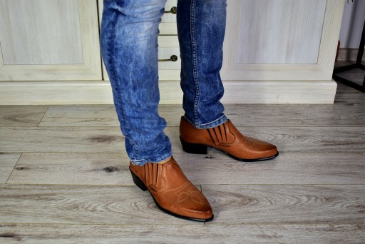 KOWBOJKI MĘSKIE NISKIE BRĄZOWE SKÓRZANE 41