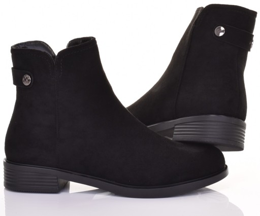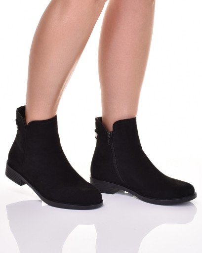МОДНЫЕ ЖЕНСКИЕ БОТИНКИ-РАКЕТЫ, ЧЕРНАЯ ЗАМШЯ, ПЛОСКИЙ КАБЛУК