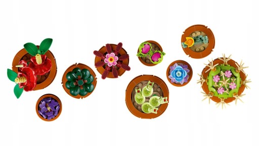 Kreatywne budowanie dla miłośników roślin, ten zestaw zawiera wszystko, czego potrzebujesz do stworzenia dziewięciu roślin pustynnych, tropikalnych i mięsożernych gatunków. Każda znajduje się w doniczce do zbudowania w kolorze terakoty.